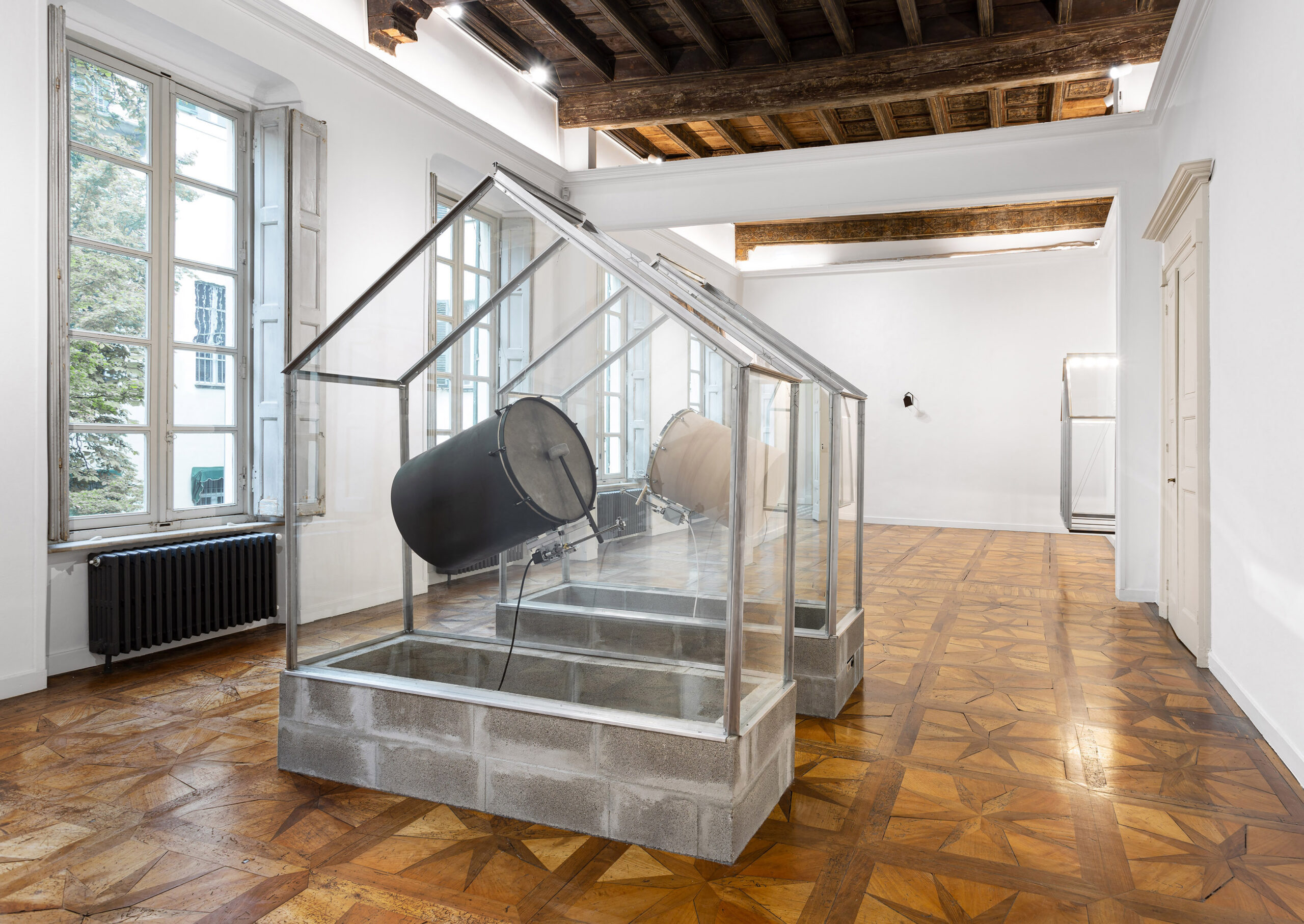 In the space of Palazzo Scaglia di Verrua, two large installations question the concept of home, time and space. The buildings, at first recognisable as physical places, are immediately emptied of their dwelling function, transforming themselves into absolute, uncontaminated spaces that, despite being transparent, close themselves off from the outside world. Considered as an extension of the artist’s famous oil chambers – in which the opening up of real space in a liquid plays both formally and conceptually with the symbolism of the double, not so much creating a simple reflection as producing a psychological sensation of sinking into another dimension – Barclay’s rooms also reflect on the theme of inaccessibility, with clear references to twentieth-century Scandinavian paintings.