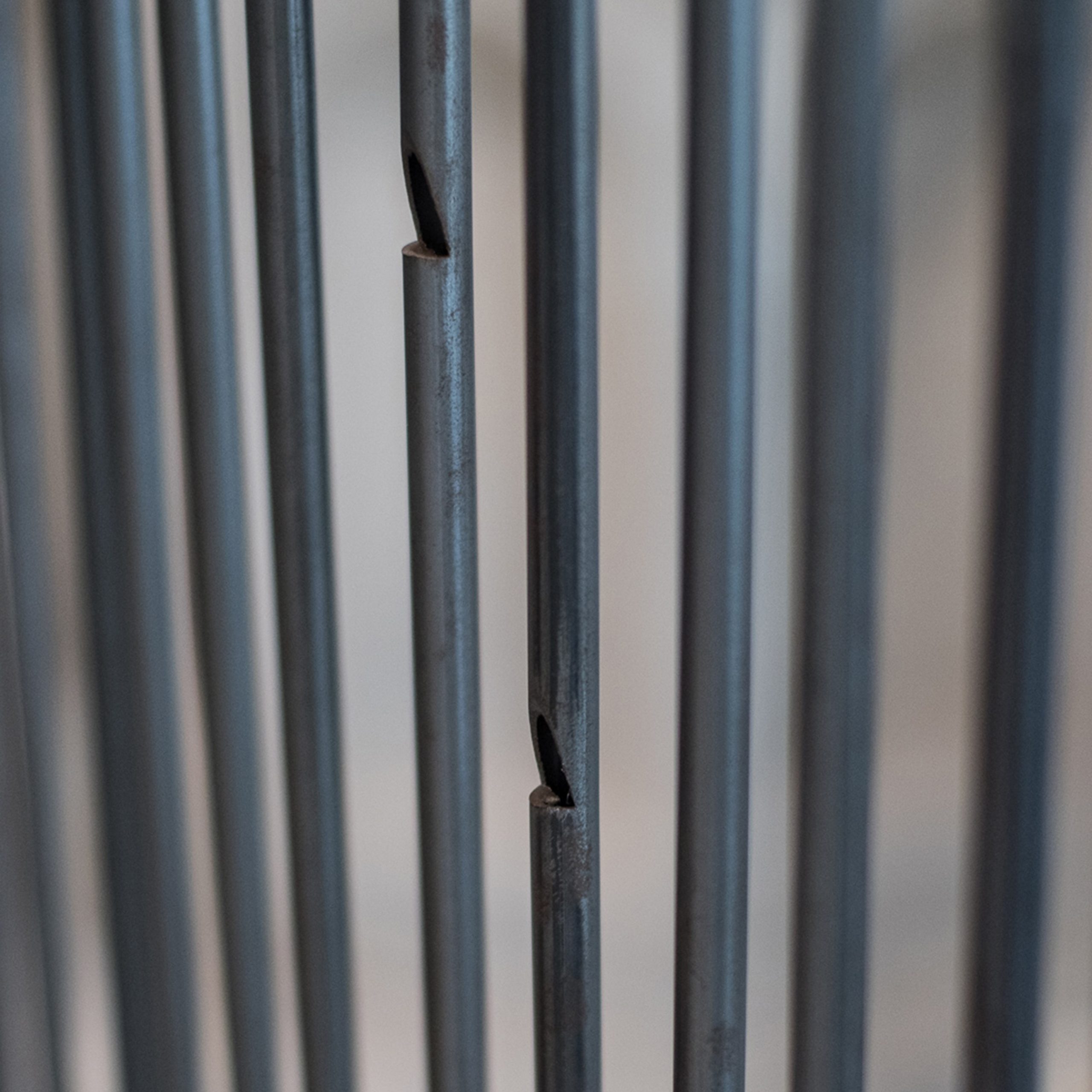 The grabbers, which return to the place the drama of the displaced in an effort of regaining the dramatic feelings that are interwoven with our Mediterranean culture, express the strength of a voice taking shape. They recall the point of fracture, the limit as a dramatic beginning. The skin between the grabbers clearly refers to the body and the wound.