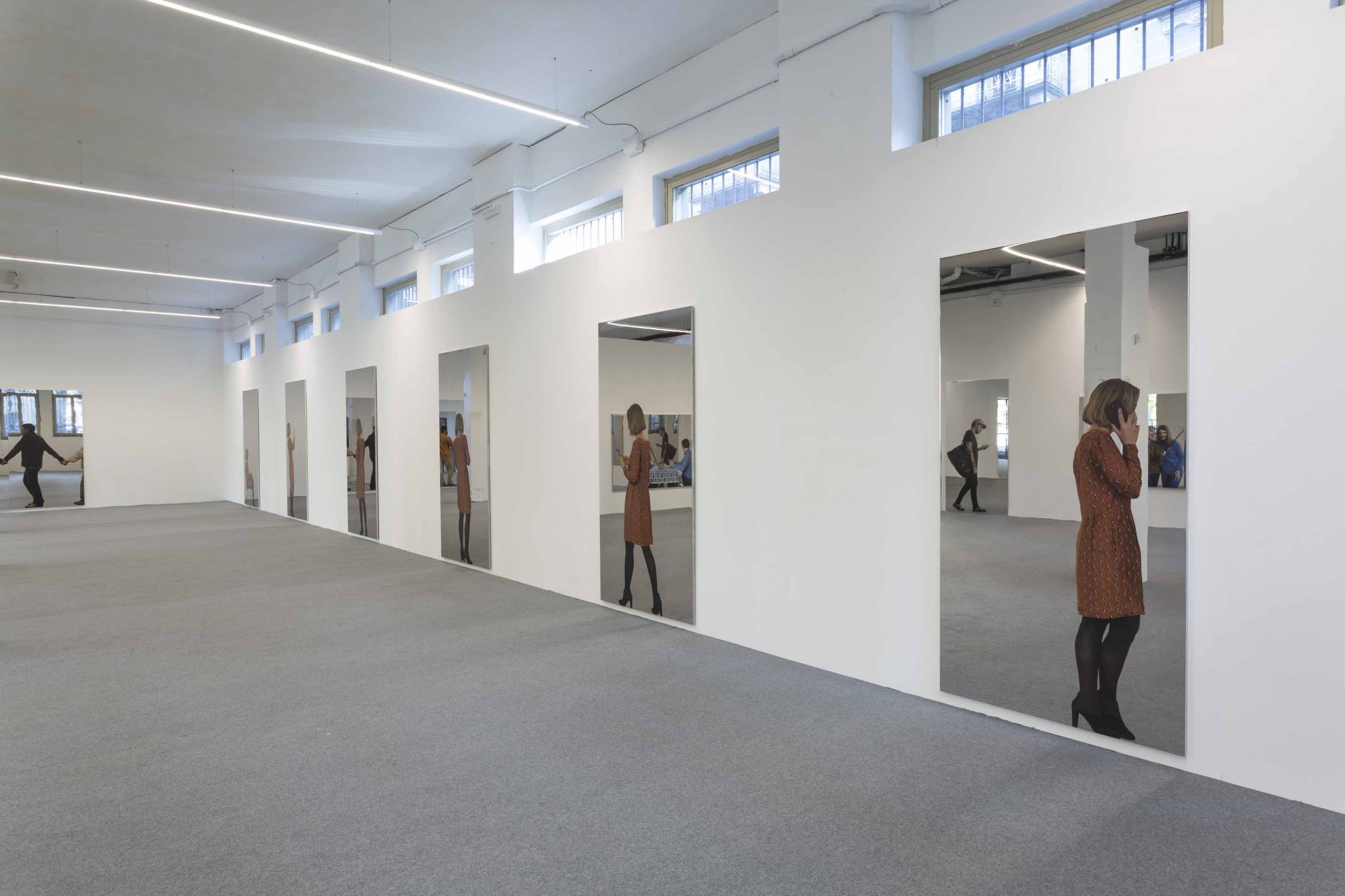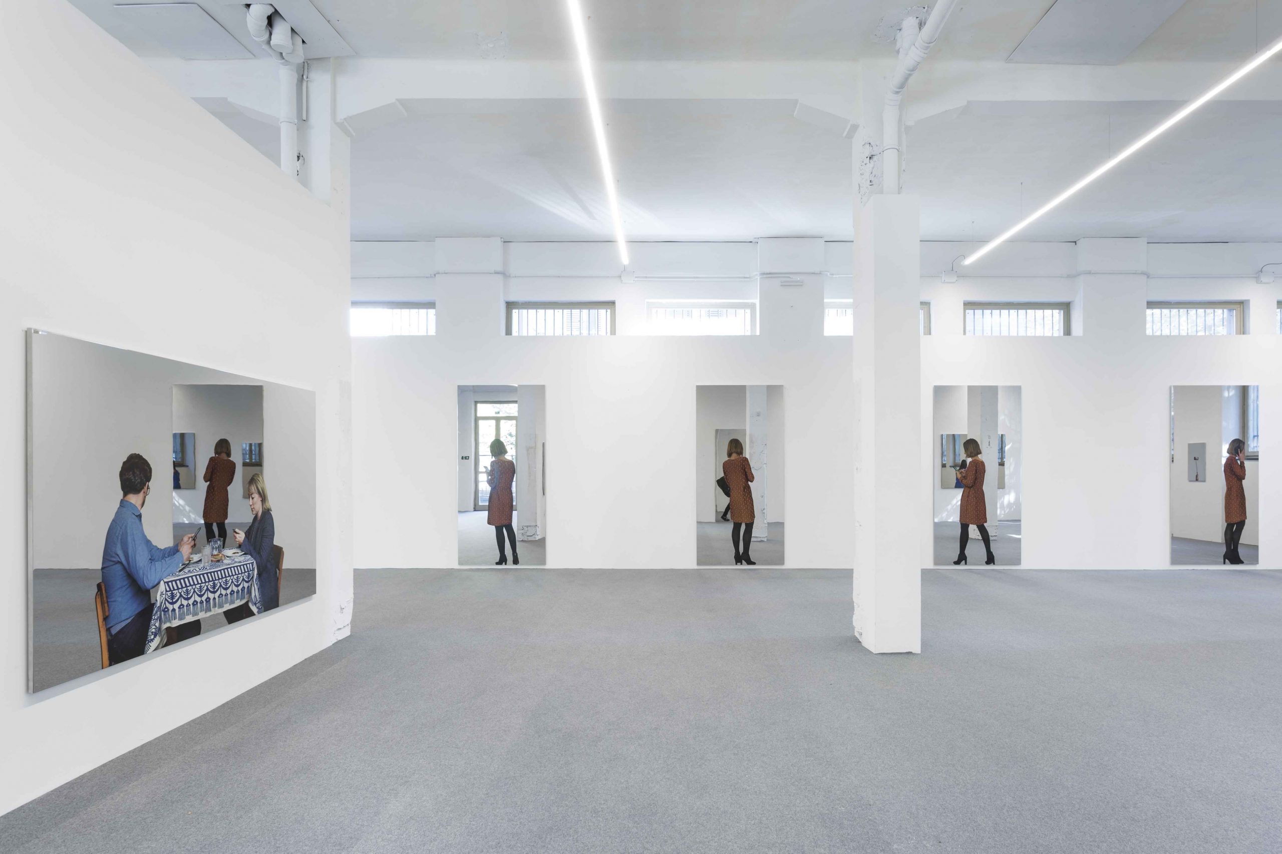 Here, human relationships are shown in their most contemporary light. A group of mirror paintings fix moments of everyday life conversations mediated by digital devices. The subjects shown seem to isolate themselves in their gestures, bringing the viewer even closer to seeking a dialogue with them.