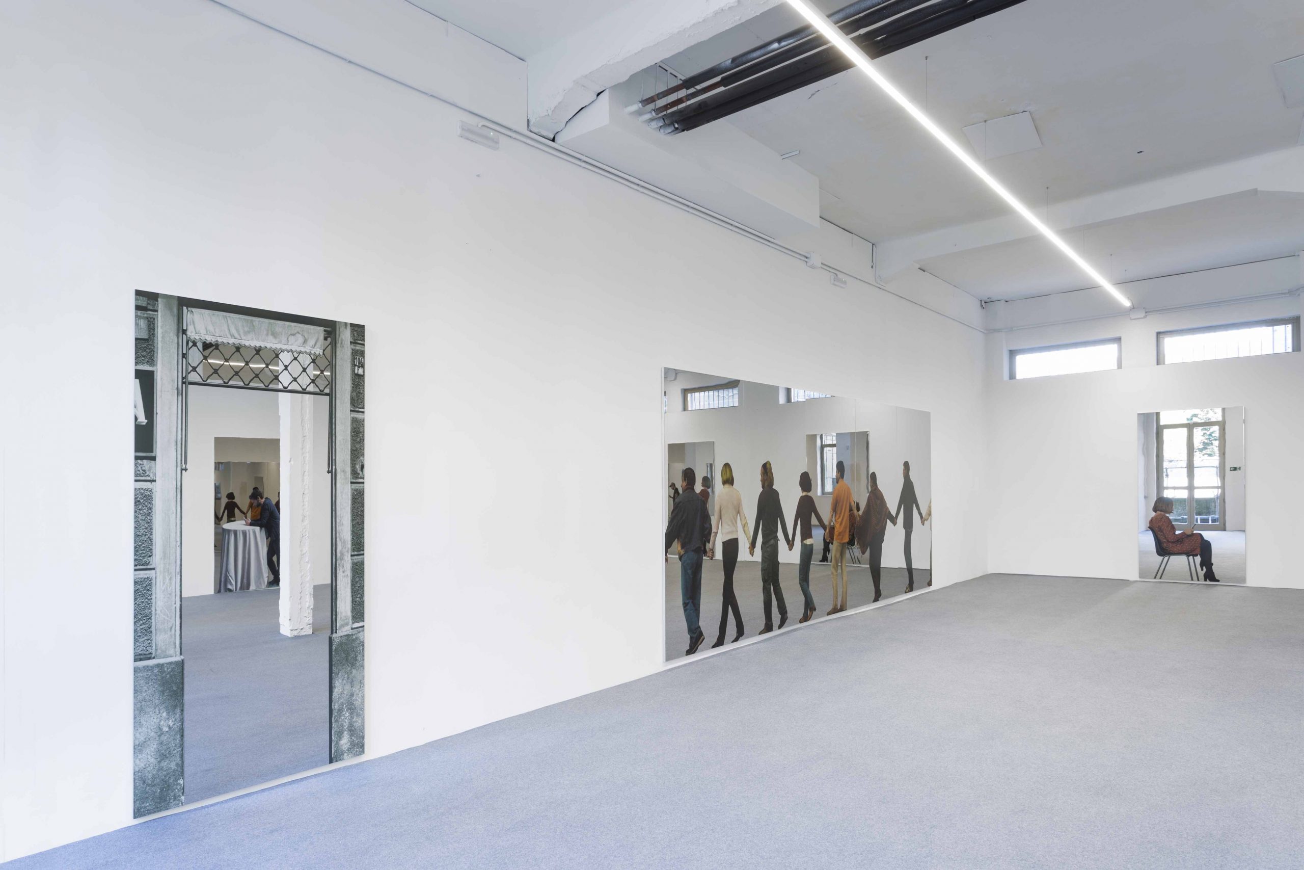 The Quadri Specchianti continue to be historical memories of moments that have appeared in the mirror of life, including the current ones. Today the phenomenon of communication has assumed a dimension inconceivable a few decades ago. A small pocket phone instantly puts us in touch with the world. As ante litteram computers, the Quadri Specchianti are both the present and the memory. Moreover the exhibited works are like selfies, as they portray the person with all that lies behind him. The whole of humanity is now technologically linked up to the point of making inter-individual communication outside the technological system precarious. The works on show have neither an apologetic nor a critical function: they simply document the state of things. Communication, however, as we can well understand, has another side and that is the lack of communication. For this reason it becomes imperative to develop a new dimension that connects the positive side and the negative side of the communication processes, finding new balances in the relationship between nature and artifice, between individual people and society, as displayed on the doors of Cittadellarte.”
