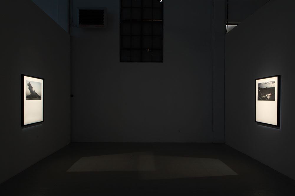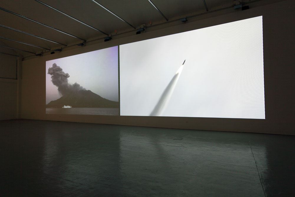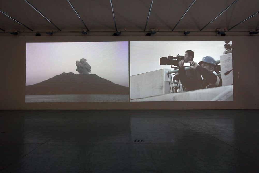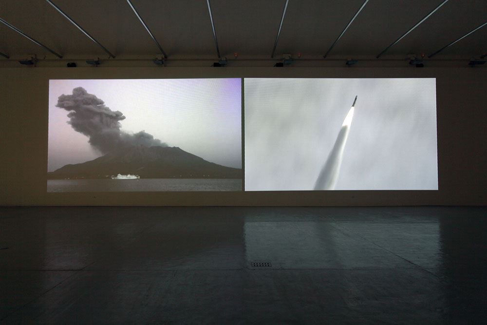 Two videos from 2011,Volcano and Launch, are projected simultaneously onto the large wall of the space at via Principessa Clotilde. From these videos four photographic prints were extracted. They are exhibited together with two other edited videos of the most recent research footage taken by the artist in Japan.