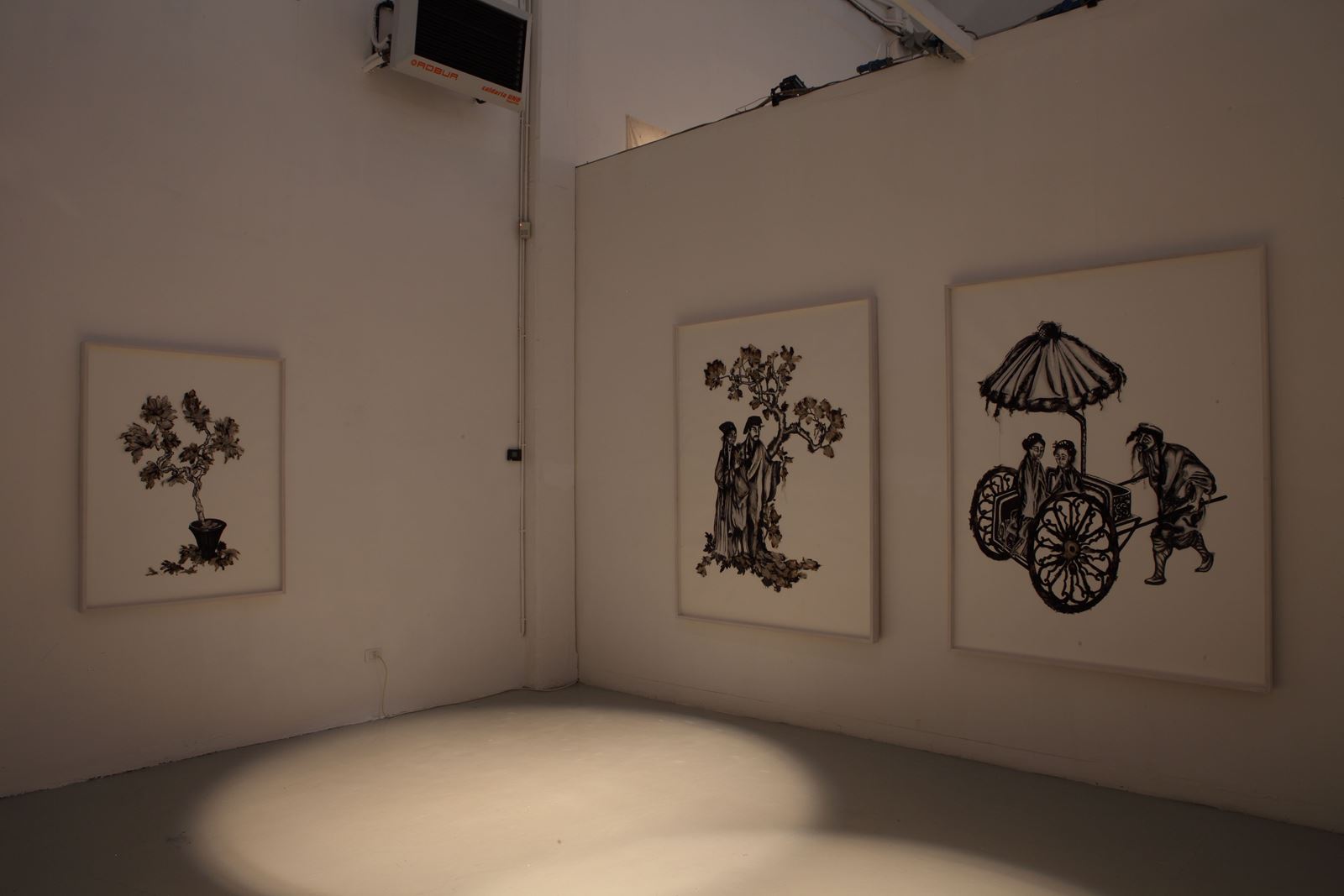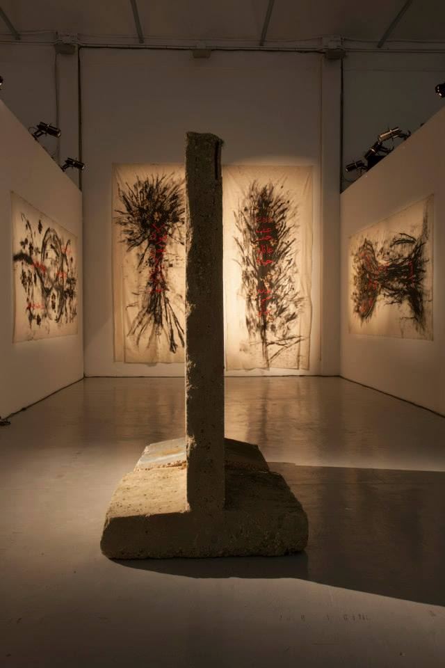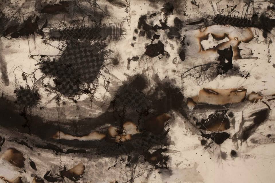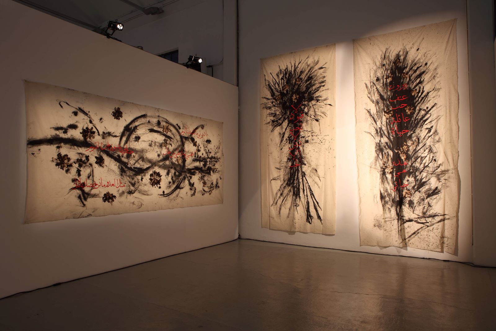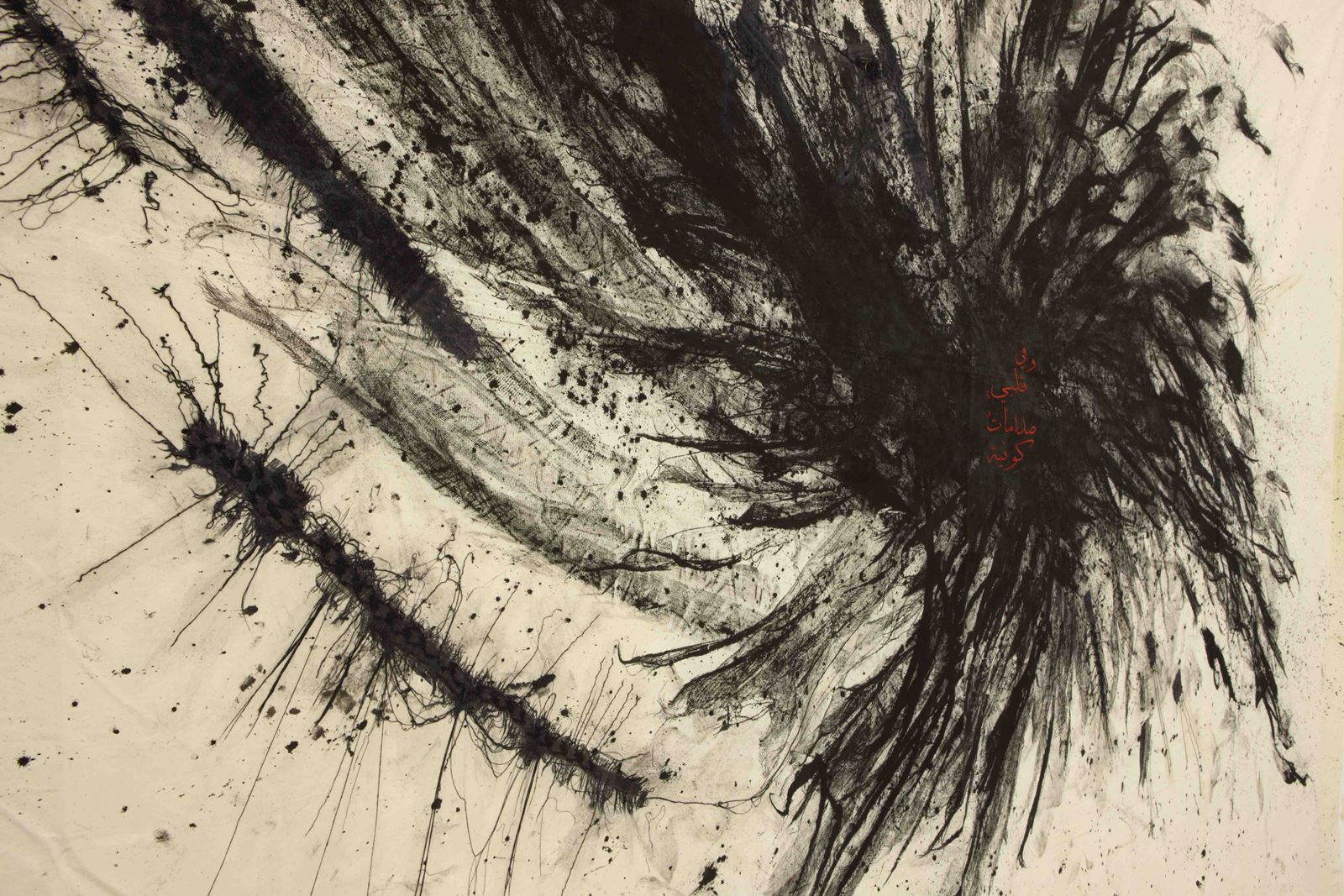 Within the solitude of a destroyed house, the artist began her research. “The journey began with setting fire to the white veil worn by the women of my region. From the ashes, I created ink that investigates the absence of light. Through paintings, drawings, video, sound and sculptural works, I question the unseen and the unknown. From fire, we create life. From destruction, we find the strength to construct meaning in our lives. If stars destroy themselves, then maybe it’s only natural for us to do the same.”