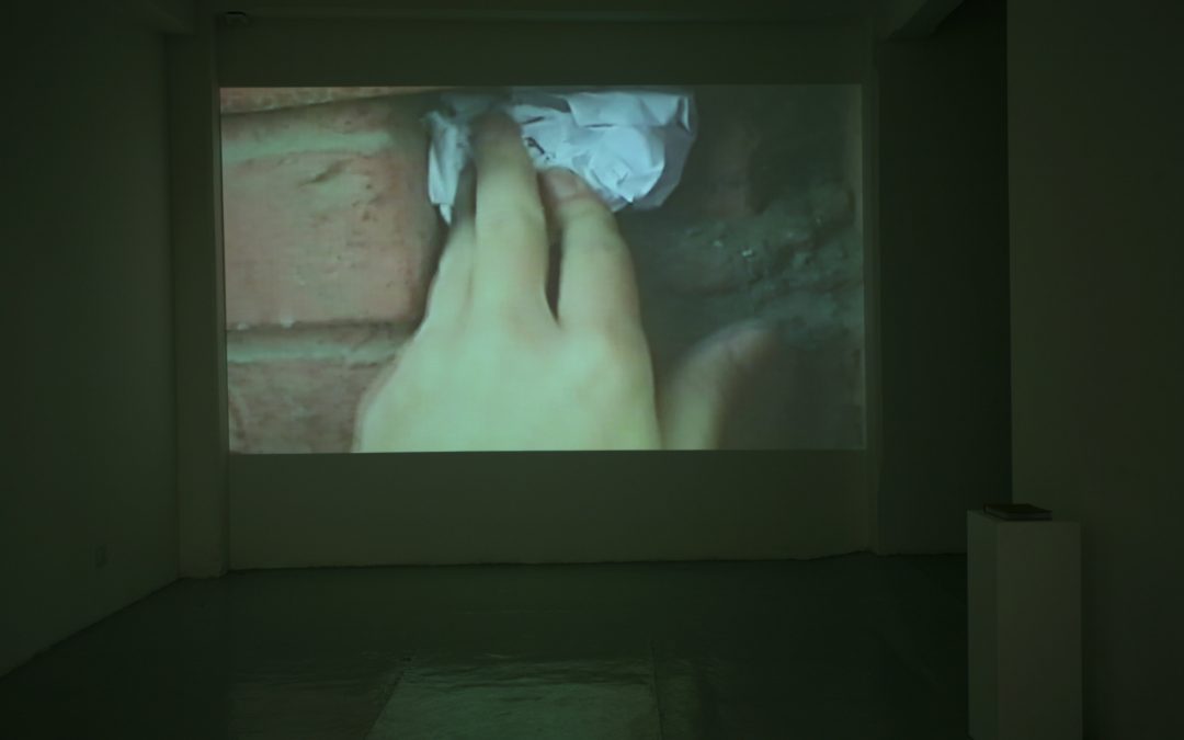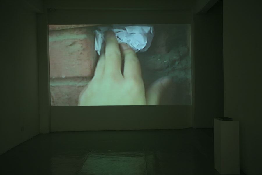 Chiude la mostra Muro (2002-2005) di Luz Maria Bedoya. Un video che documenta le performance che l’artista peruviana ha ambientato a Dublino, Porto Alegre, Lima e a Venezia nel corso della 51esima Biennale. Messaggi scritti un una lingua indecifrabile, che comunque segue le regole sintattiche e grammaticali del paese in cui la performance avviene, sono inseriti in crepe, buchi o piccole nicchie che l’artista trova girando per le città. Messaggi inesistenti per città reali la cui memoria, in un gesto che rievoca la scena finale del celeberrimo In the mood for love di Wong Kar Wai, è stata conservata dai muri che li hanno ospitati.