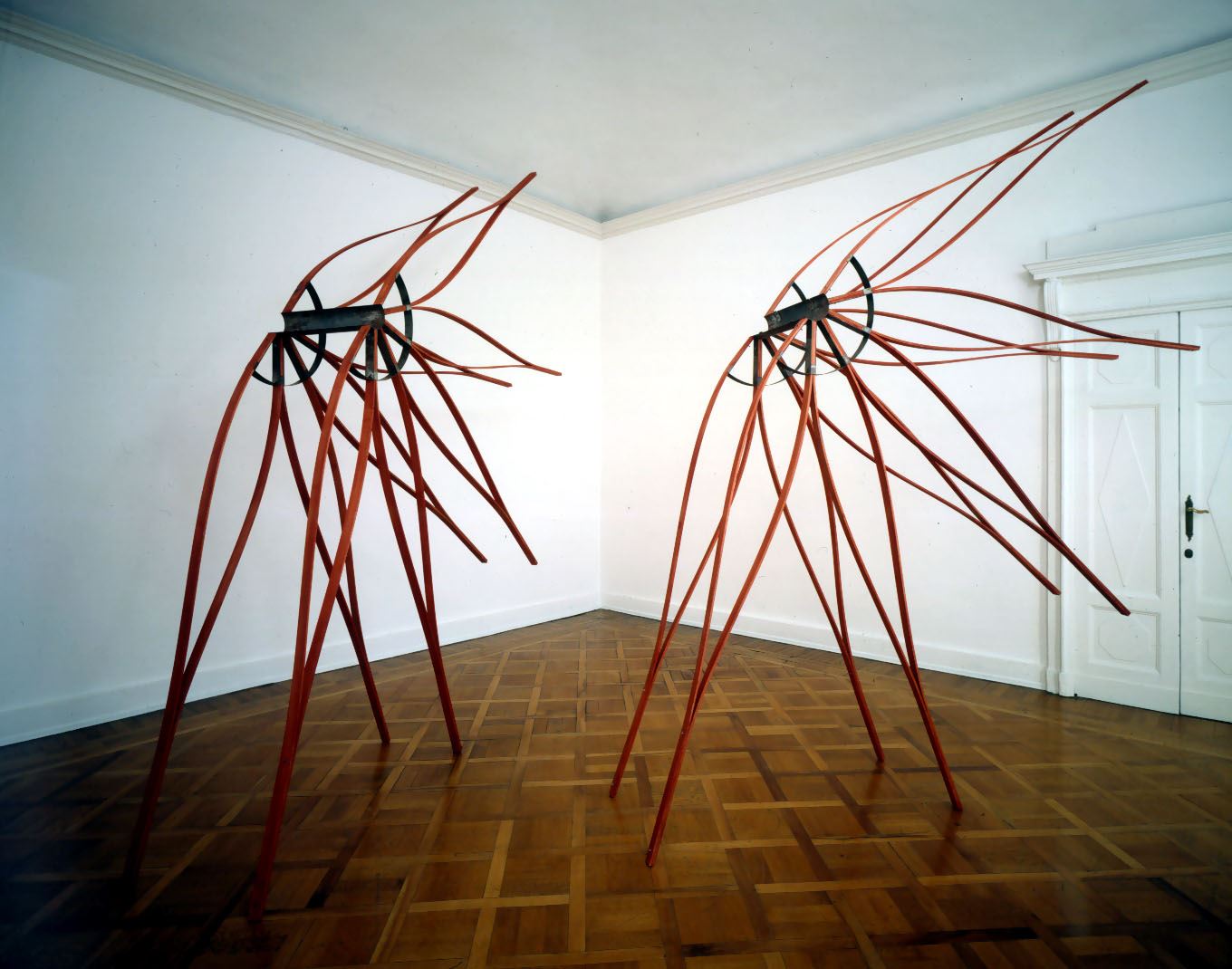 “Sculture dinamiche” ovvero opere aperte la cui apparente semplicità racchiude, come ha scritto Rudy Fuchs, una  “formulazione di segreti”, vale a dire l’ intuizione di una possibilità di esistenza nello spazio di una realtà. É questa una realtà possibile, un teorema, per la cui costruzione (eseguita con stile e spartana eleganza) Ferrara si avvale di una geometria solo apparentemente classica, fatta di forme che la dimensione del tempo amplia in traiettorie e sviluppi sempre nuovi, eppure riconoscibili, quasi naturali.