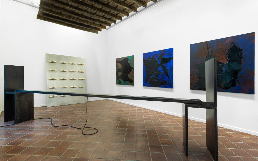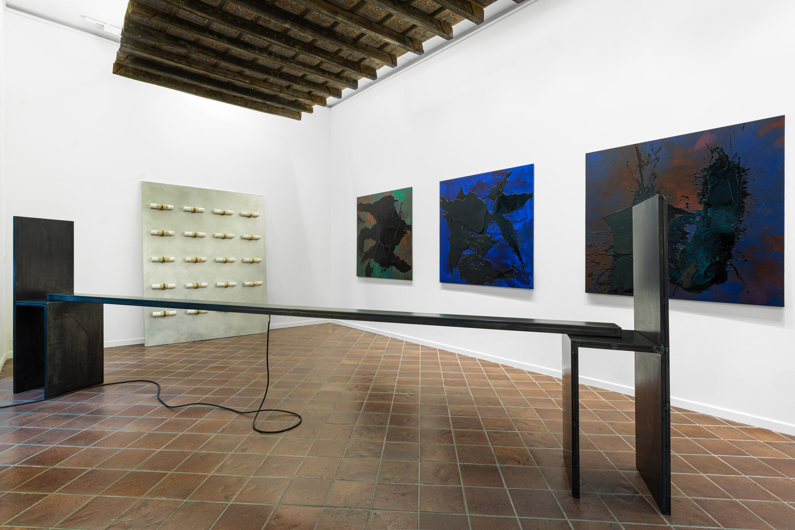 La galleria Persano è felice di ospitare, nel giardino interno di Palazzo Scaglia di Verrua, i nuovi lavori di Alfredo Romano. Ad una grande un’installazione sonora si affianca un’opera storica ed una inedita serie di pitture su alluminio particolarmente rappresentative della sua ricerca, da sempre sostenuta da un solido impegno etico.