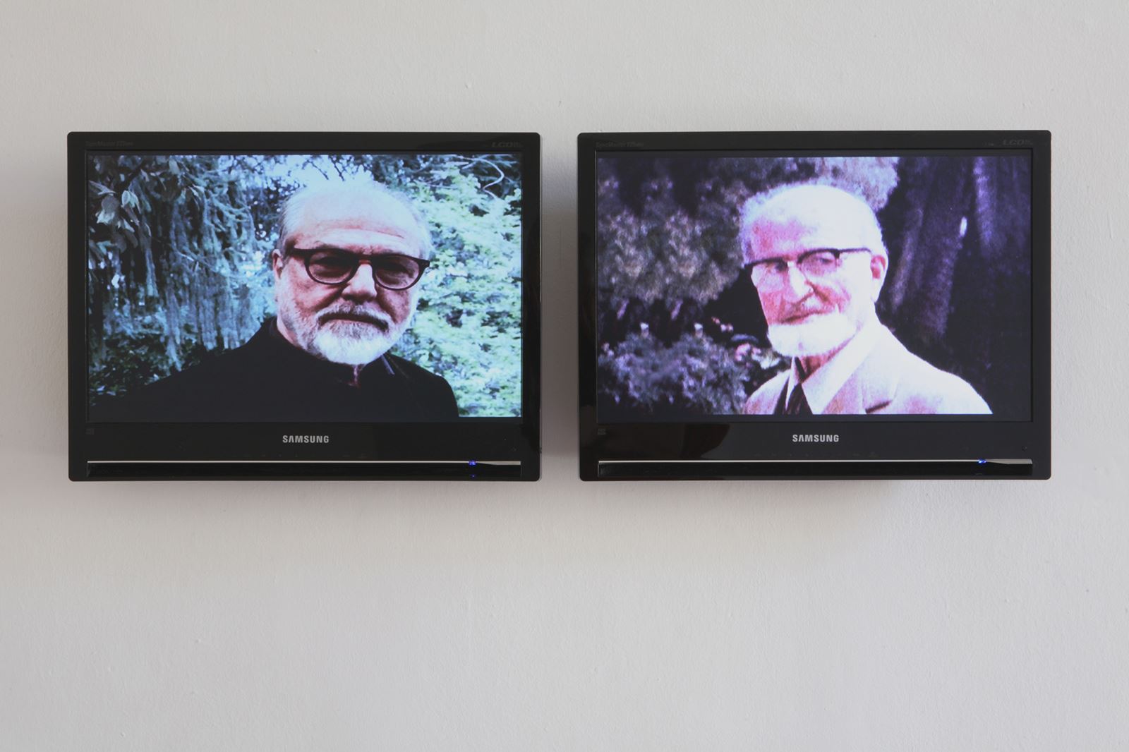 Nella mostra le mie opere riprendono e rispecchiano le opere del mio genitore fatte per rispecchiare le mie ed esserne rispecchiate.
