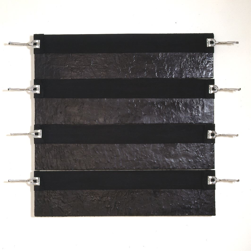 “Opera al nero”, 1985 – ferro, legni, catrame, corda. Cm 210 x 210.