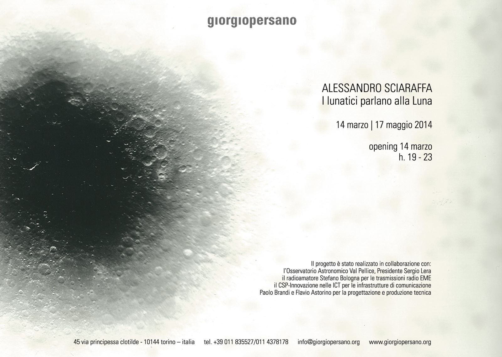 Il progetto è stato realizzato in collaborazione con: l’Osservatorio Astronomico Val Pellice, Presidente Sergio Lera; il radioamatore Stefano Bologna per le trasmissioni radio EME; il CSP-Innovazione nelle ICT per le infrastrutture di comunicazione; Paolo Brandi e Flavio Astorino per tutte le fasi della progettazione e della produzione tecnica.