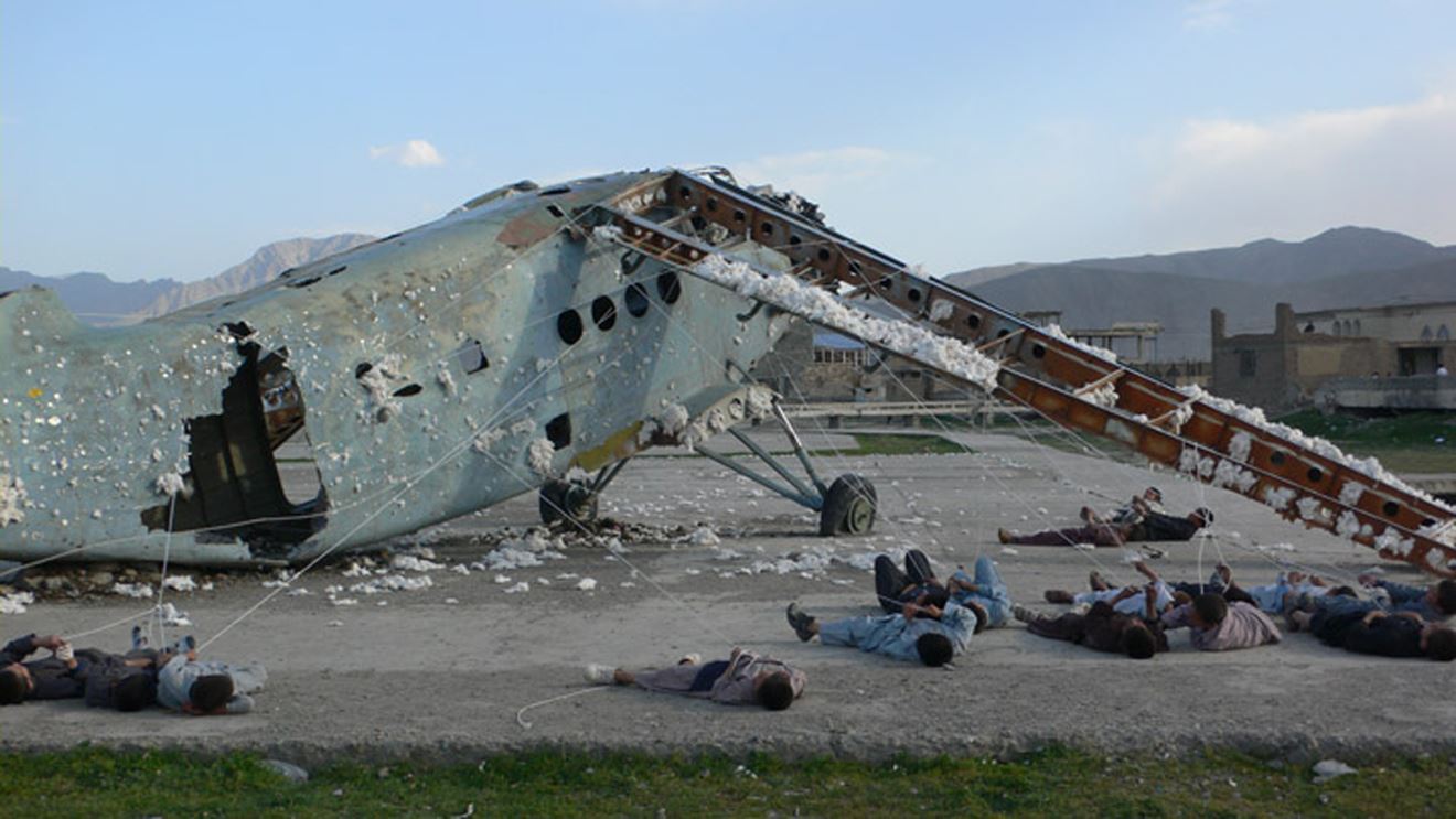 Girato come di consueto in Afghanistan, In Transit presenta la fantasia poetica di un gruppo di bambini che cercano di far volare un vecchio aereo russo crivellato di colpi d’arma da fuoco. “Il lavoro”, spiega l’artista, “funziona sia come performance che come film. Ho lavorato con circa settanta bambini dai 5 ai 9 anni. Questi bambini riempiono di cotone ogni singolo buco della fusoliera dell’aereo, poi con delle funi tentano di alzarlo in cielo come un aquilone”.