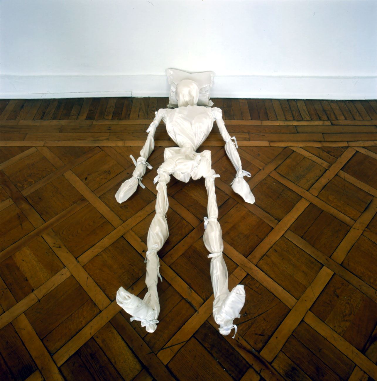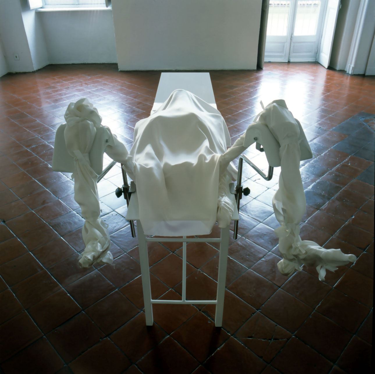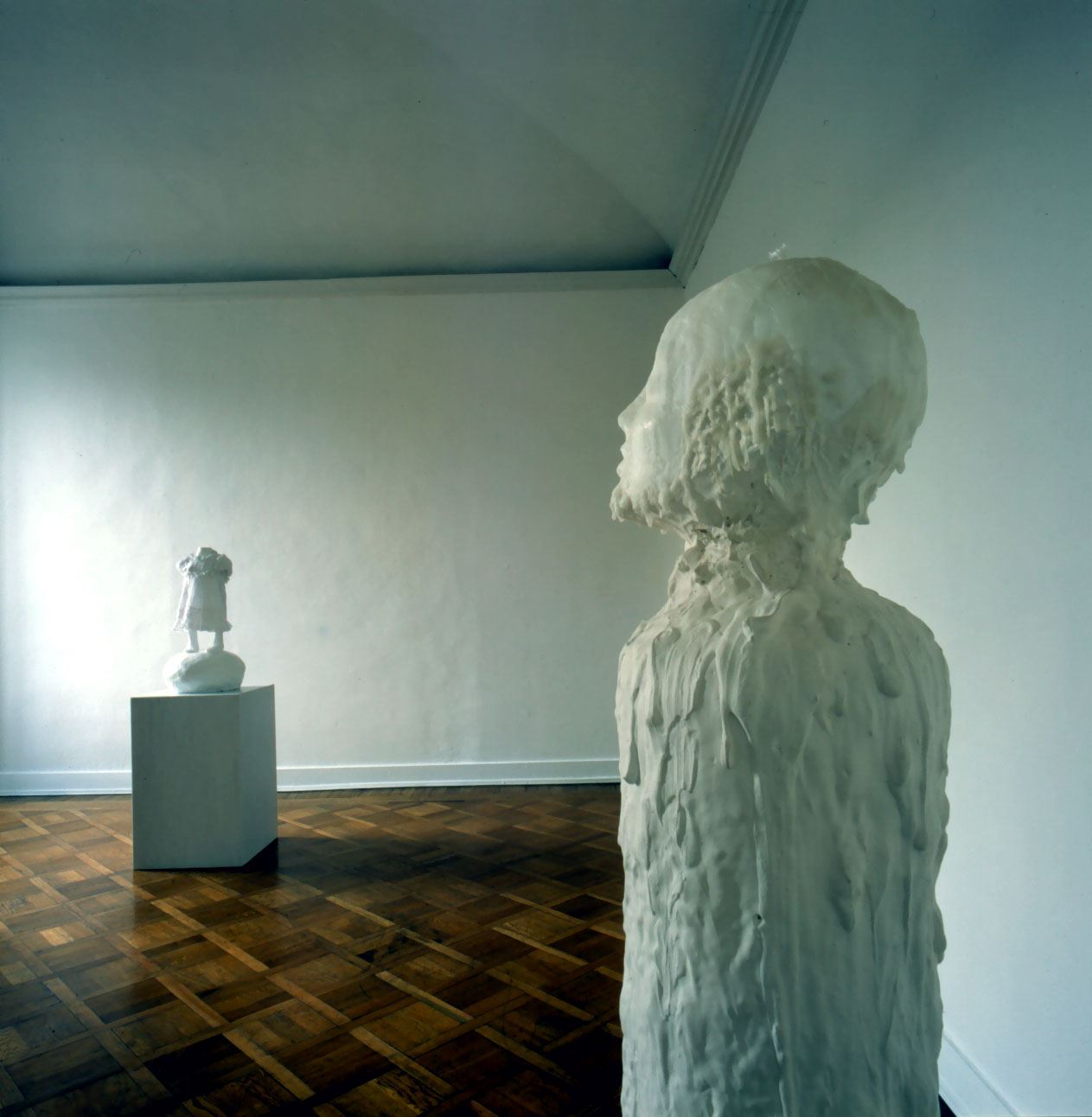 L’esposizione di Jan Van Oost alla Galleria Giorgio Persano di Torino vuole proporre un nuovo modello di comunicazione, dove prevale il desiderio dello scambio intersoggettivo. L’artista assume il ruolo di guida e di stimolo per penetrare nel mondo interiore dell’uomo e gli spettatori, ognuno con le proprie storie personali, vengono a tal punto coinvolti da diventare emotivamente parte dello scenario della mostra. La capacità dell’artista di far condividere intense commozioni, di vivere insieme situazioni culturali di intensa partecipazione emotiva fa nascere l’occasione di costruire un evento di forte impegno etico che implica una nuova maturazione morale degli individui. La comunicazione come fondamento essenziale dell’etica apre infatti la strada all’atto della “partecipazione” degli individui e dei gruppi al divenire del fatto artistico. La linea, quindi, che parte dalla comunicazione per arrivare alla partecipazione è per Van Oost la sola capace di modificare nei fatti le strutture accentrate ed autoritarie che tanta parte hanno avuto nell’assetto socio-politico ed organizzativo della seconda parte del XX secolo.