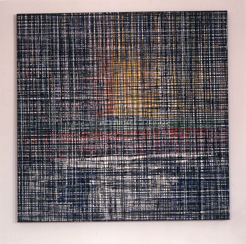 Nei dipinti la luce bianca si scompone tra le reti fissandosi nei colori appartenenti a un ricordo, come in tante istantanee che impediscono lo svanimento della vita e il disperdersi del sentire. La luce passa e si dispone su ciò che rimane di un paesaggio, di una scena, di una visione che si vorrebbe trattenere… E’ l’artista stesso a fornirci una definizione della sua arte: “custode di tramonti e lotta contro lo svanimento delle cose”.