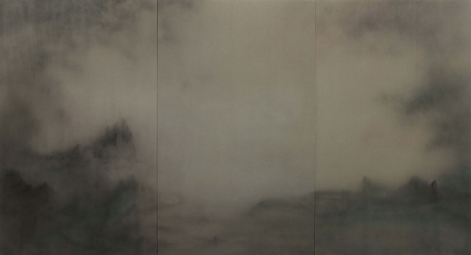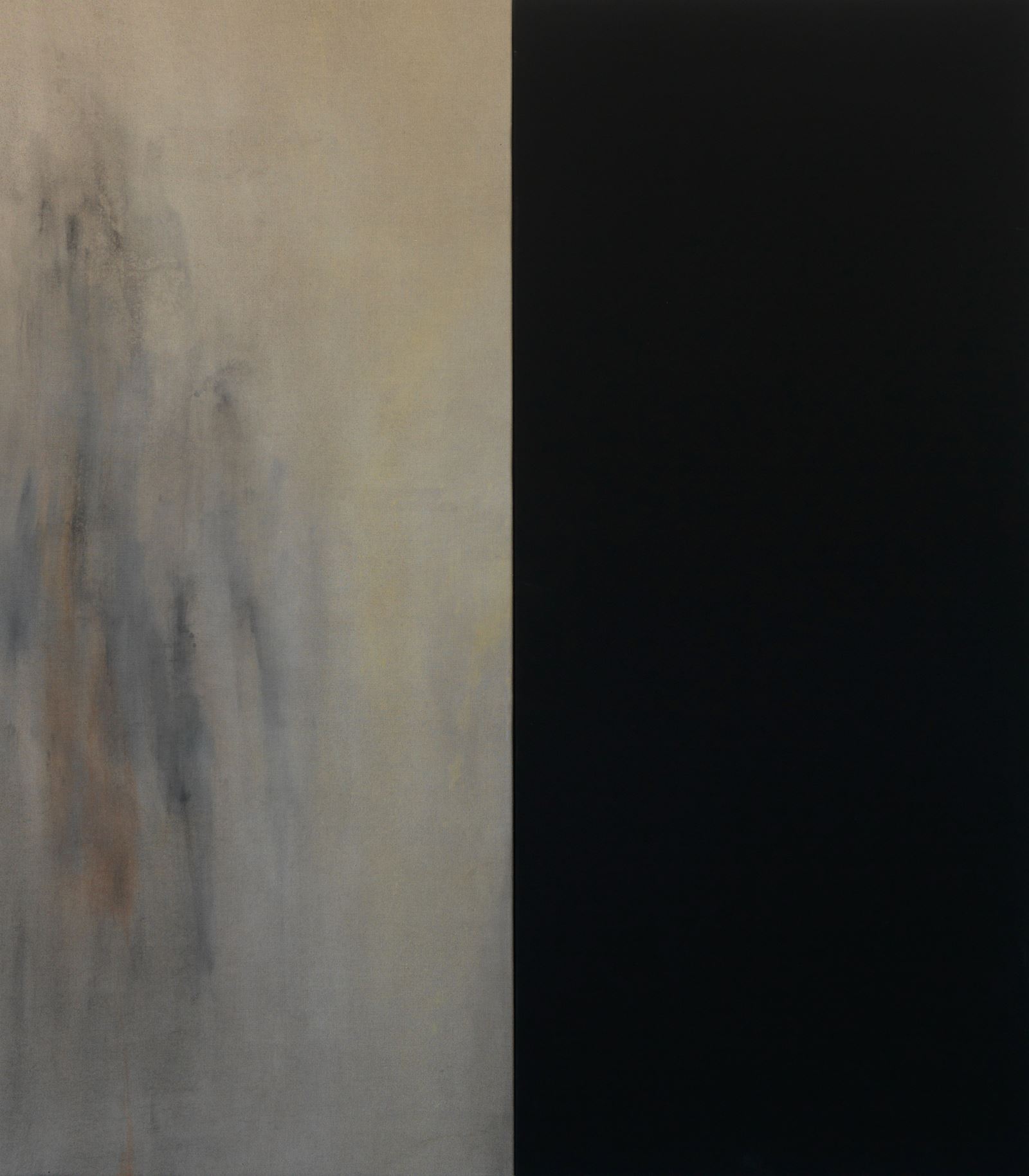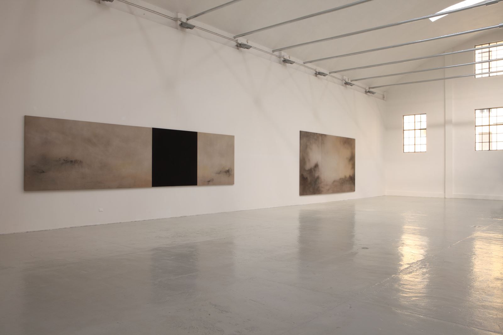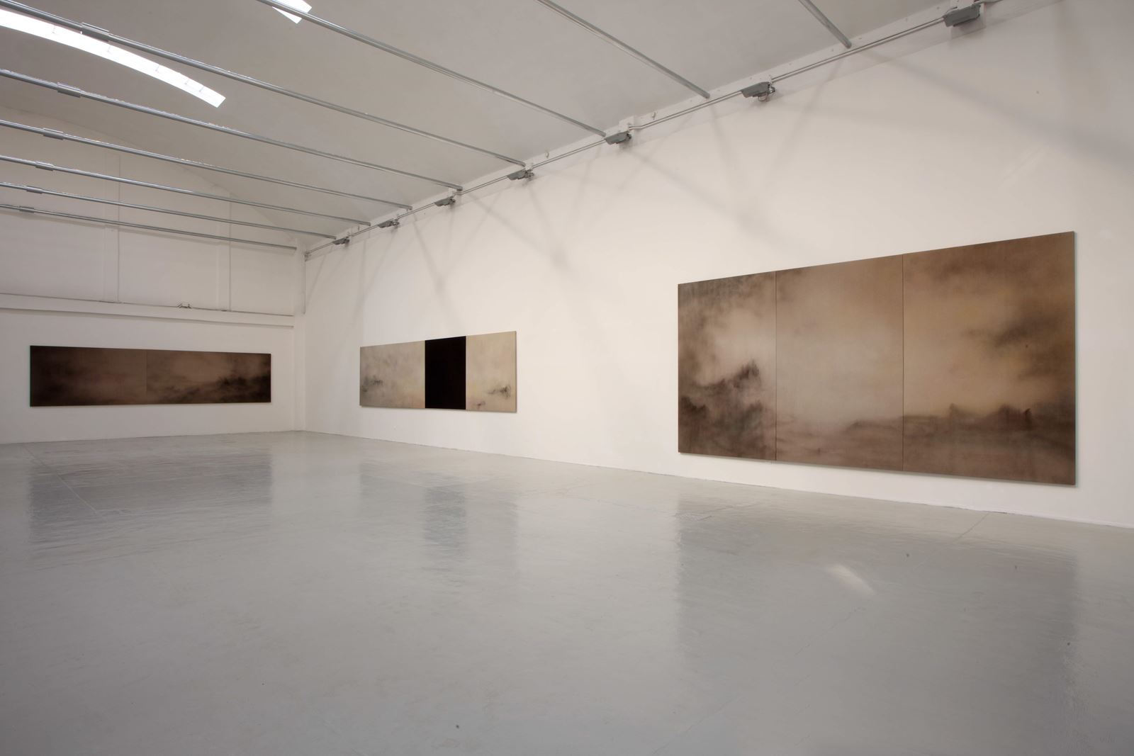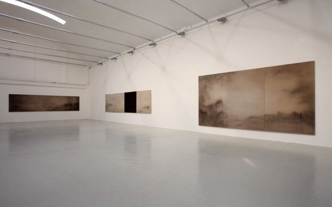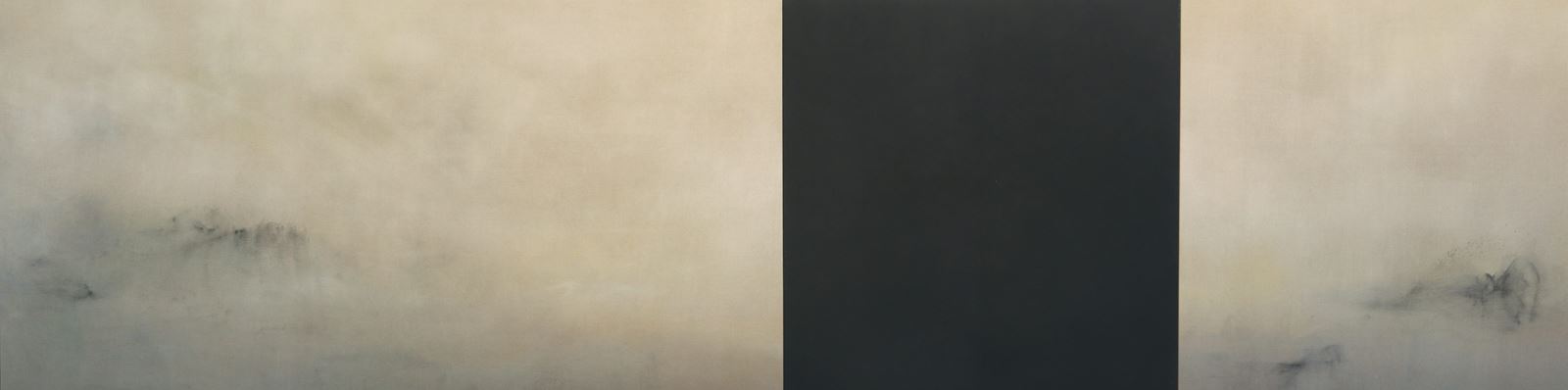 Le superfici nere accostate al paesaggio senza tempo, le grandi dimensioni e la “riduzione in scala” dello spettatore, pongono così interrogativi sulle verità della percezione e della pittura.