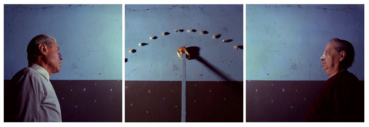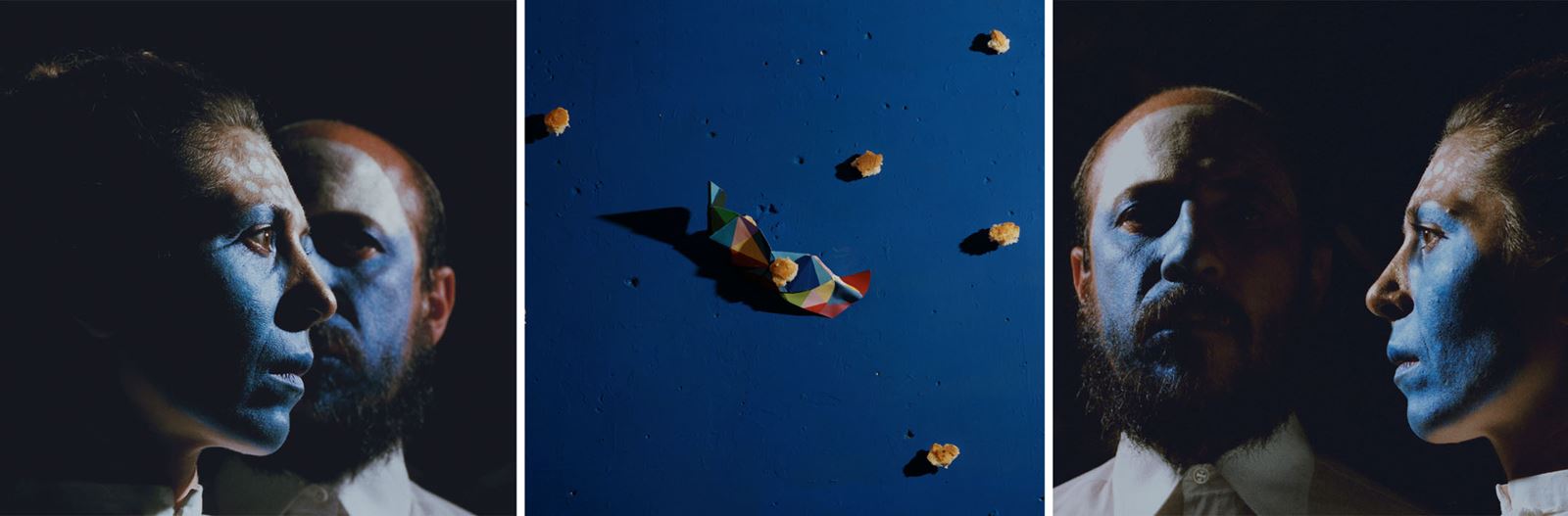 Parallelamente a questo grande lavoro installativo, alcuni spazi accolgono un vero e proprio viaggio all’interno dell’opera fotografica di Zaza. Vengono qui presentati vari lavori storici fra i più rappresentativi. Quelli degli anni ’70, in cui il padre, la madre, il legame con la terra e con l’origine, sono il fulcro di una indagine interiore assolutamente radicale, come Mimesi (1975) o Neo terrestre (1979). Oppure quelli degli anni ’80-’90, in cui la presenza della moglie introduce un’idea del femminile assai intensa sebbene eterea e sognante, favorendo la ricerca della vera bellezza nella sua componente sottile e spirituale, come Cielo abitato (1985). Per arrivare agli anni 2000, ai lavori più recenti, in cui il rapporto con la figlia arricchisce ed enfatizza la dimensione performativa e teatrale dell’opera di Zaza, come Ritratto magico (2005) o Paesaggio magico (2009). La simbologia si accende di nuovi toni e nuove presenze, i volti sono sempre più icone, figure che trascendono da una specifica identità, per essere davvero parte di un possibile universo.