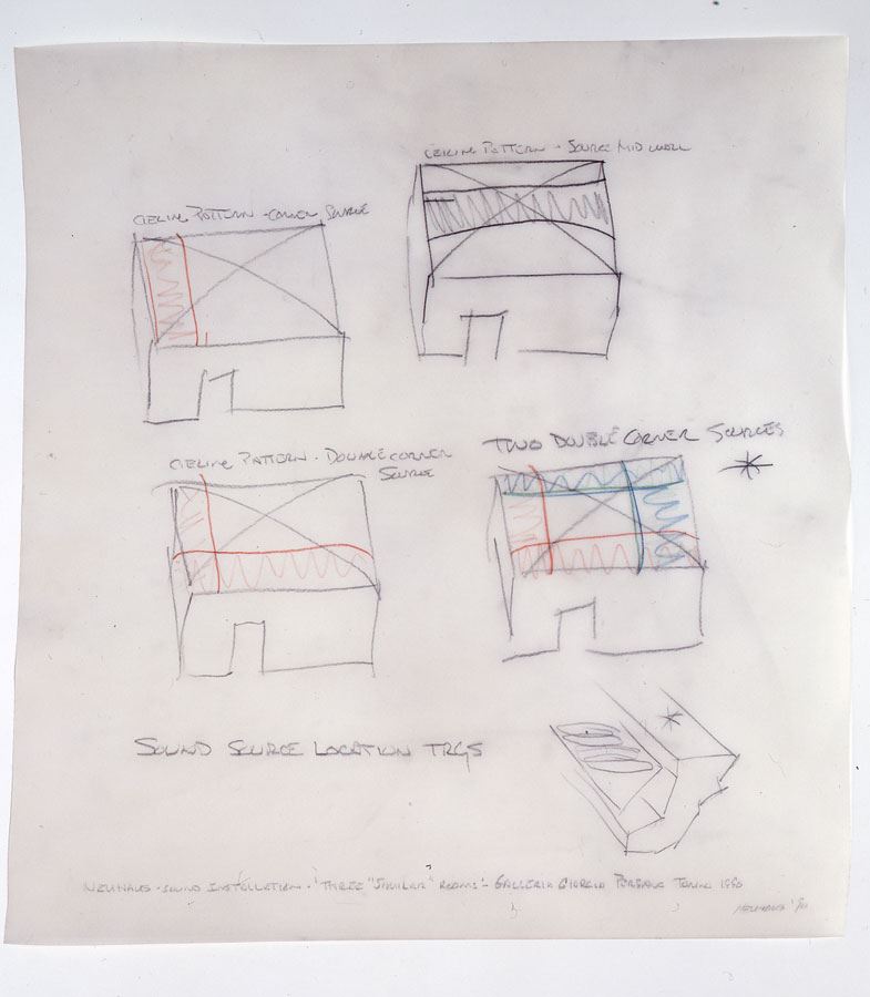 Il lavoro dà ad ogni stanza un suono mixato differente. I suoni, non alti ma facilmente percepibili, formano intrecci che avvologono ogni stanza; non tanto come qualcosa da sentire, quanto come qualcosa in cui immergersi.